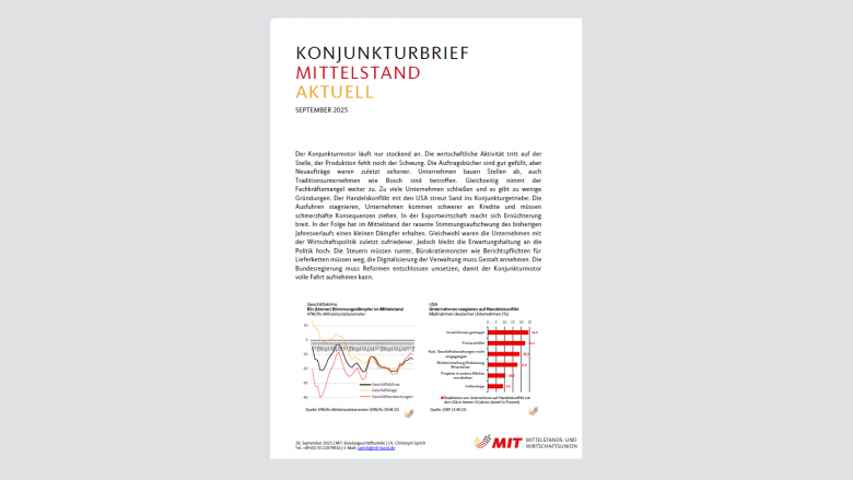 Der Mittelstand geht verschnupft in den Herbst. Wirtschaftsleistung und Produktion sind zuletzt geschrumpft, Auftragslage, Exporte und Fahrleistung entwickeln sich negativ. Die Insolvenzen bleiben auf hohem Niveau, seit Jahren waren nicht mehr so viele Beschäftigte von den Schließungen...